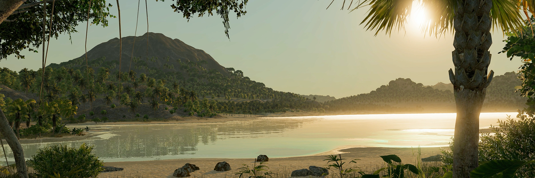 In the Tropical Climate, there are scattered islands of various sizes instead of a large landmass. The generator offers various options for adjusting the ratio between landmass and water. Each island has its own character: some offer areas for agriculture, others are covered by dense jungle or dominated by high mountains. This makes the construction of railway lines almost impossible, and even laying down roads is tough. Offshore industries at sea are easier to reach though, whether by helicopter or ship. Together with conventional aircraft, helicopters are also suitable for transporting larger quantities between islands, where the distance makes building bridges or tunnels too expensive: at least where steep coasts do not prevent the construction of ports.
